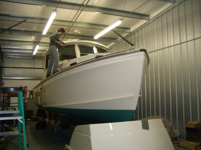 John Palmer installing the new "American Marine" windows