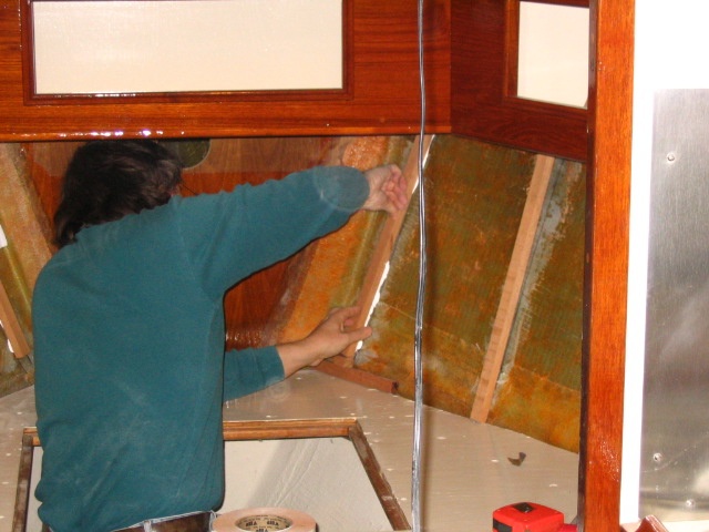 John Palmer, Boat Builder, laying up braces for ash ceiling strips to be installed
